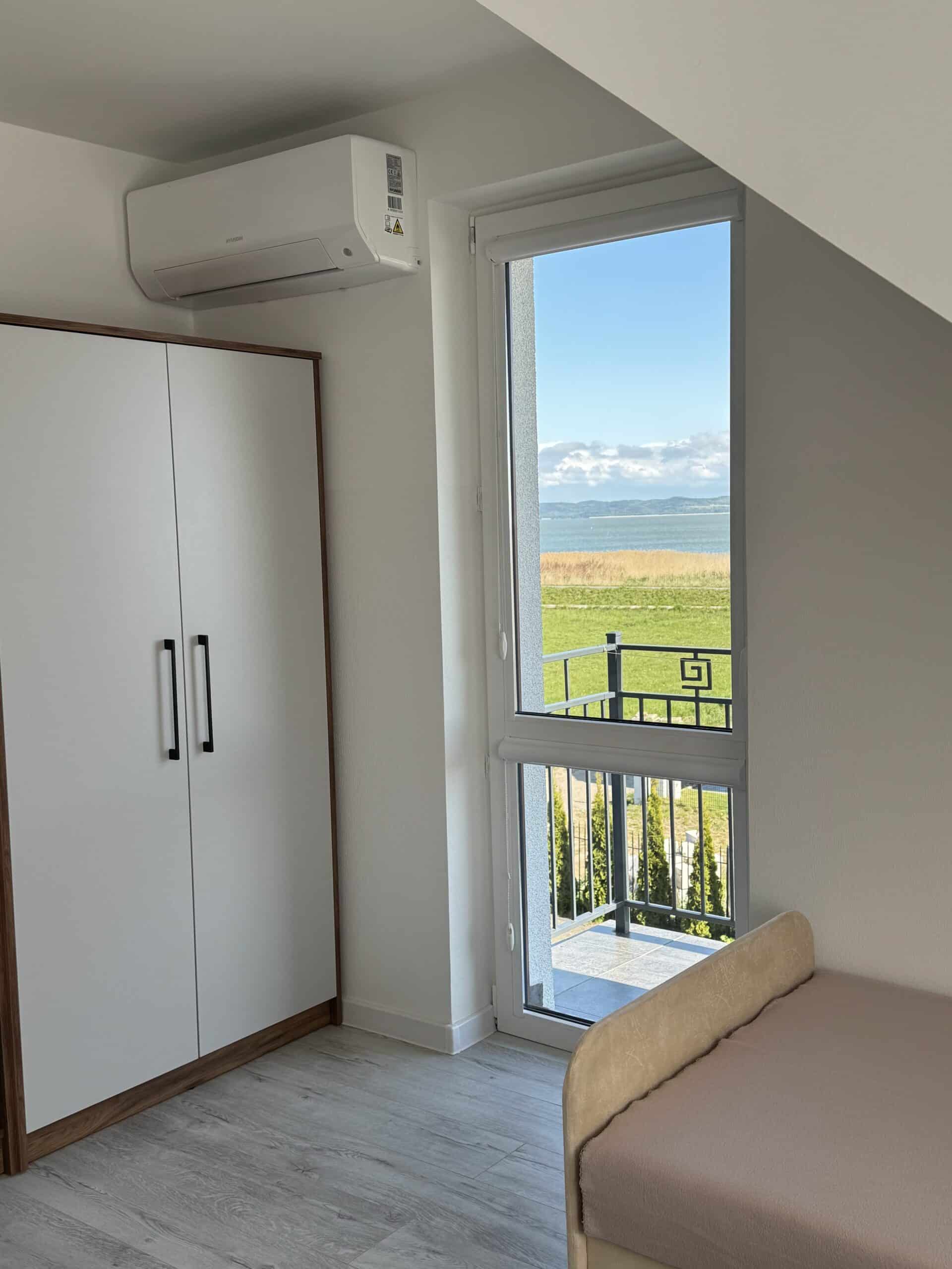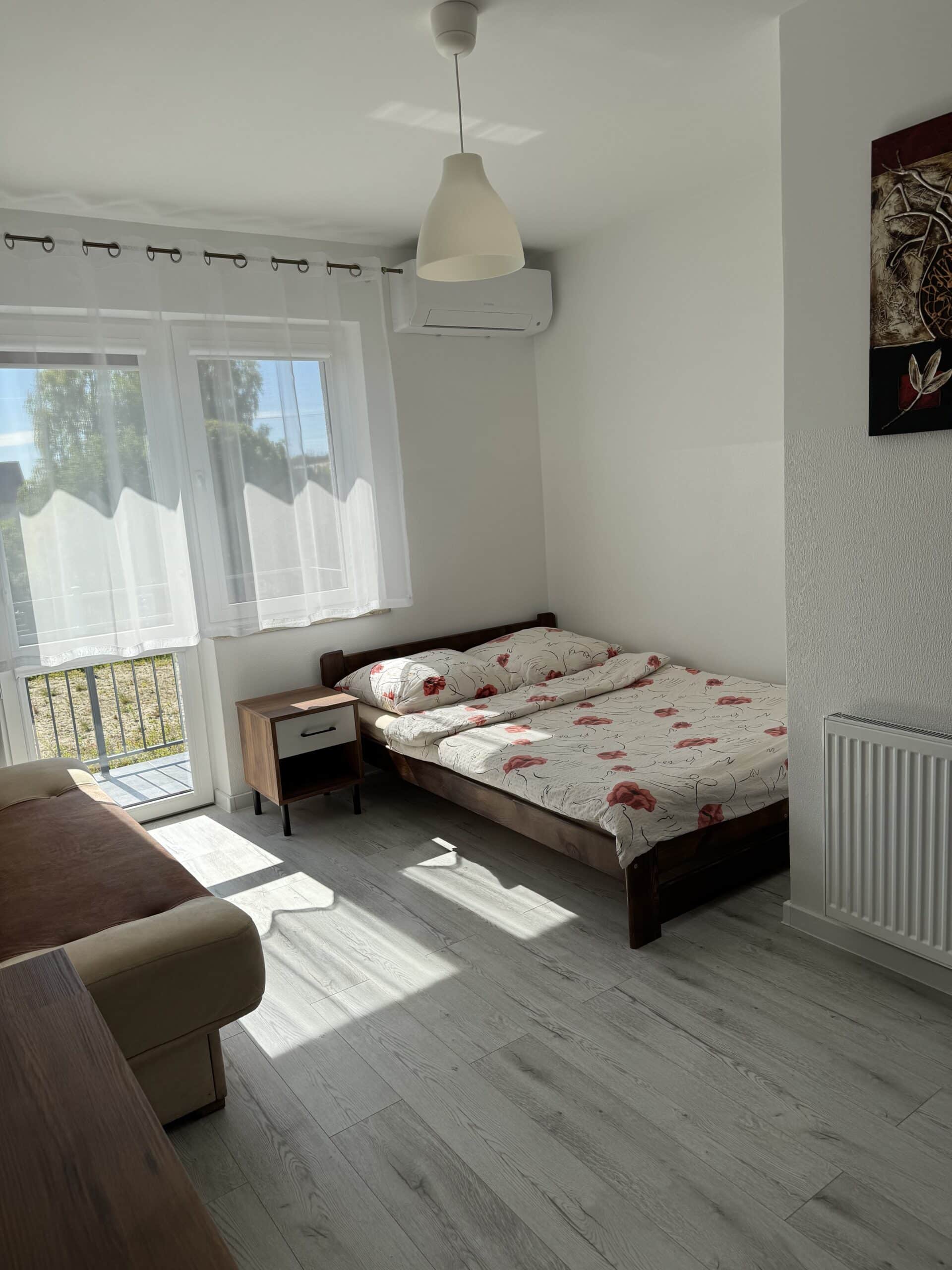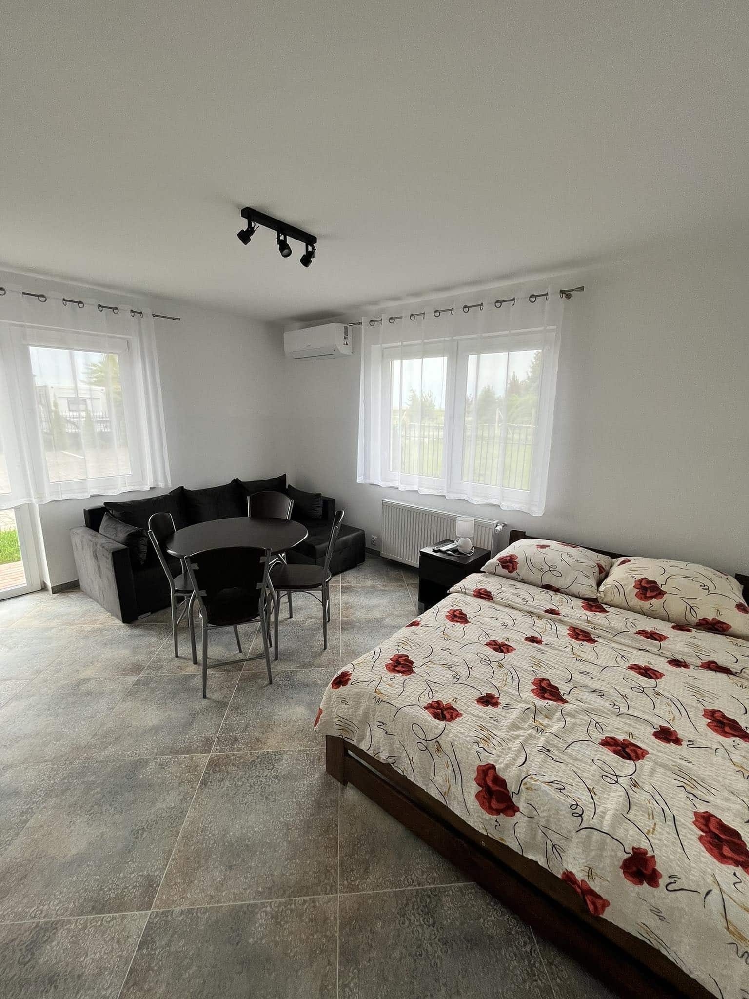 Apartament o powierzchni 17 m², z balkonem, klimatyzowany, zlokalizowany jest na parterze budynku. Składa się z prywatnej kuchni oraz łazienki. W głównym pomieszczeniu znajduje się stół z krzesłami i dwuosobowe łóżko małżeńskie. Do apartamentu przynależy także oddzielne pomieszczenie z łóżkiem. Do dyspozycji gości w apartamencie jest telewizor, szafa oraz mała lodówka. Goście mogą również korzystać z sauny oraz jadalni (użytkowanej we własnym zakresie). Cena noclegu nie obejmuje posiłków. Do dyspozycji gości pozostają również wszelkie dostępne letnie akcesoria na zewnątrz: grill, pergola, leżaki.